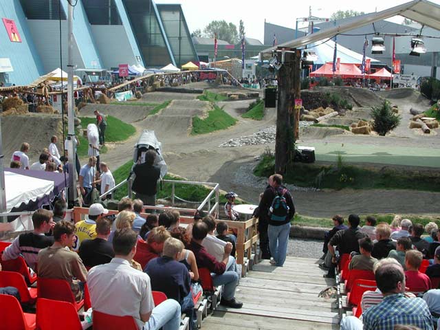 Außer dem neuen Stinky Nine bleibt bei den Stinky Modellen alles beim Alten. Lediglich die Designs und die Ausstattungen wurden aktualisiert sowie Detailverbesserungen vorgenommen. Die altbekannten Modellbezeichnungen Stinky, Stinky Dee Lux und Stinky Primo wurden beibehalten. Neues gibt es auch vom italienischen Protektoren-Hersteller Dainese. Die verschiedenen Protektorenmodelle wurden prinzipiell beibehalten, lediglich der Stoff auf dem die einzelnen Plastik-Protektorenelemente befestigt sind wurde verändert. Der Stoff ist jetzt mit größeren Löchern versehen die ihm einen Netzartigen Look verpassen. Der Atmungsaktivität ist dies sicher nicht abträglich, waren die bisherigen Protektorenshirts von Dainese doch für ihre Förderung der Schweißbildung berüchtigt. Aus Italien kommt noch eine weitere Neuheit, die sich allerdings noch im Prototypenstatus befindet. Ein neuer Turro Downhill-Rahmen mit Viergelenk-Hinterbau. Der Rahmen besitzt ein stark abfallendes doppeltes Oberrohr und ein ebenfalls doppeltes Unterrohr. Das abfallende Oberrohr verleiht dem Rad eine schöne, kompakte Optik. Na ja schaut euch halt die Bilder an. Am Rocky Mountain Stand von der jetzt in Münster bei Dieburg ansässigen Firma Bike Action gab es die 2002 er Varianten der bekannten RM 9, RM 7 DH und RM 7 FR Modelle zu sehen die im wesentlichen baugleich mit den 2001 Modellen sind. Lediglich im Detail wurden Verbesserungen vorgenommen. Richtig neu war eigentlich nur das mit der Manitou Black ausgestattete Switch, dass die meisten schon aus den Magazinen kennen dürften. Auffallend war bei den Freeridern bei Rocky Mountain und bei Kona der Trend auch hinten eine große Bremsscheibe zu verbauen. Auffallend auf der diesjährigen Eurobike waren die zahlreichen wirklich schönen Dual und Dirt Hardtail Rahmen die zum einen von renommierten Herstellern und von Taiwanesen präsentiert wurden. Wobei anzumerken ist dass die meisten No-Name Taiwan Rahmen absolut baugleich mit Rahmen von halbwegs bekannten Herstellern waren. Wieso bloß ? Mitlerweile ist es ja kein Geheimnis mehr dass die meisten Rahmen von renommierten Herstellern ebenfalls in Taiwan gefertigt werden. Bleibt noch anzumerken dass die Taiwanesen ihr Metier richtig gut beherrschen wie am Dual Hardtail von Astro zu sehen war. Es gab bestimmt noch Tausende andere interessante Dinge zu sehen, aber ich hab jetzt keine Lust mehr noch mehr Müll zu schreiben. Alles in allem war die 2002 er Eurobike recht interessant und man konnte Einiges an Stickern und Prospekten abstauben. Die meisten Neuheiten wie zum Beispiel die Specialized Bikes und die Fox Gabeln kannte man halt allesamt schon aus der Bike, Mountainbike, Mountainbike Rider...so dass es wenige Neuheiten gab die man auf der Eurobike exclusiv vorgestellt bekam. Auch das Showprogramm wäre ganz gut gewesen wenn die Fahrer nicht dauernd von lächerlichen Moderationen und geschmacklosen Musikauftritten unterbrochen worden wären. |